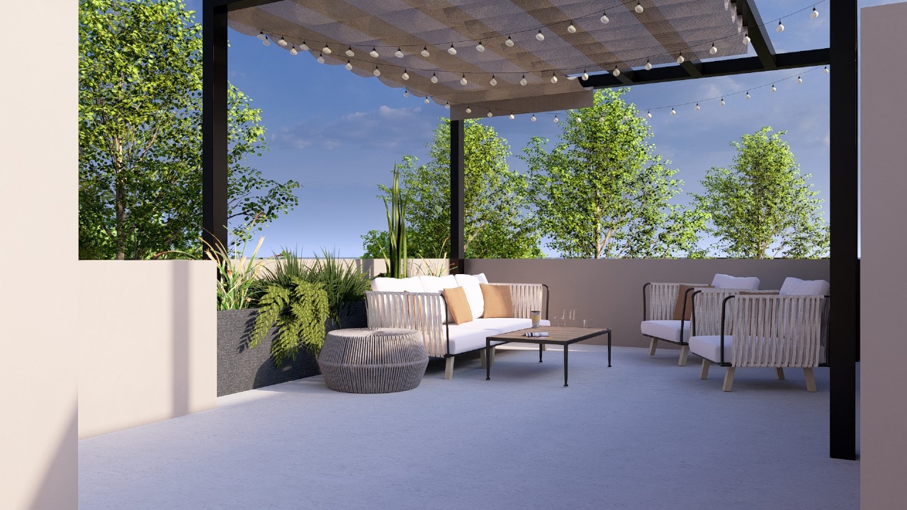 - Roof garden con pérgola y barra de asador